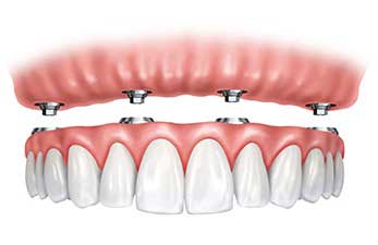 Para conseguir que la prótesis quede fijada en la boca se colocan implantes, el número de ellos depende de las condiciones individuales de cada paciente y puede ir normalmente de 6 a 10 implantes.